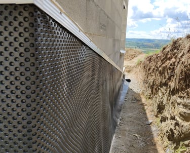 Nous appliquons des systèmes d’étanchéité sur les murs enterrés pour prévenir l’humidité et les infiltrations dans les caves, sous-sols et garages.